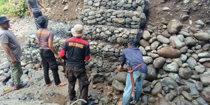 Personel Brimob Barru Cor Tiang Jembatan Desa