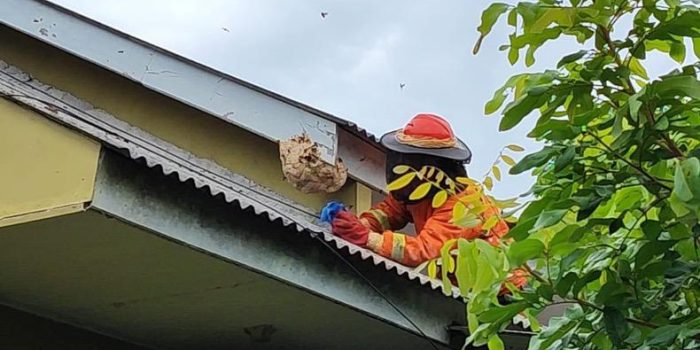 NEWS BARRU – Petugas Damkar Barru mengalami insiden saat mengevakuasi sarang tawon vespa di salah satu permukiman warga. Saat berupaya menjangkau sarang