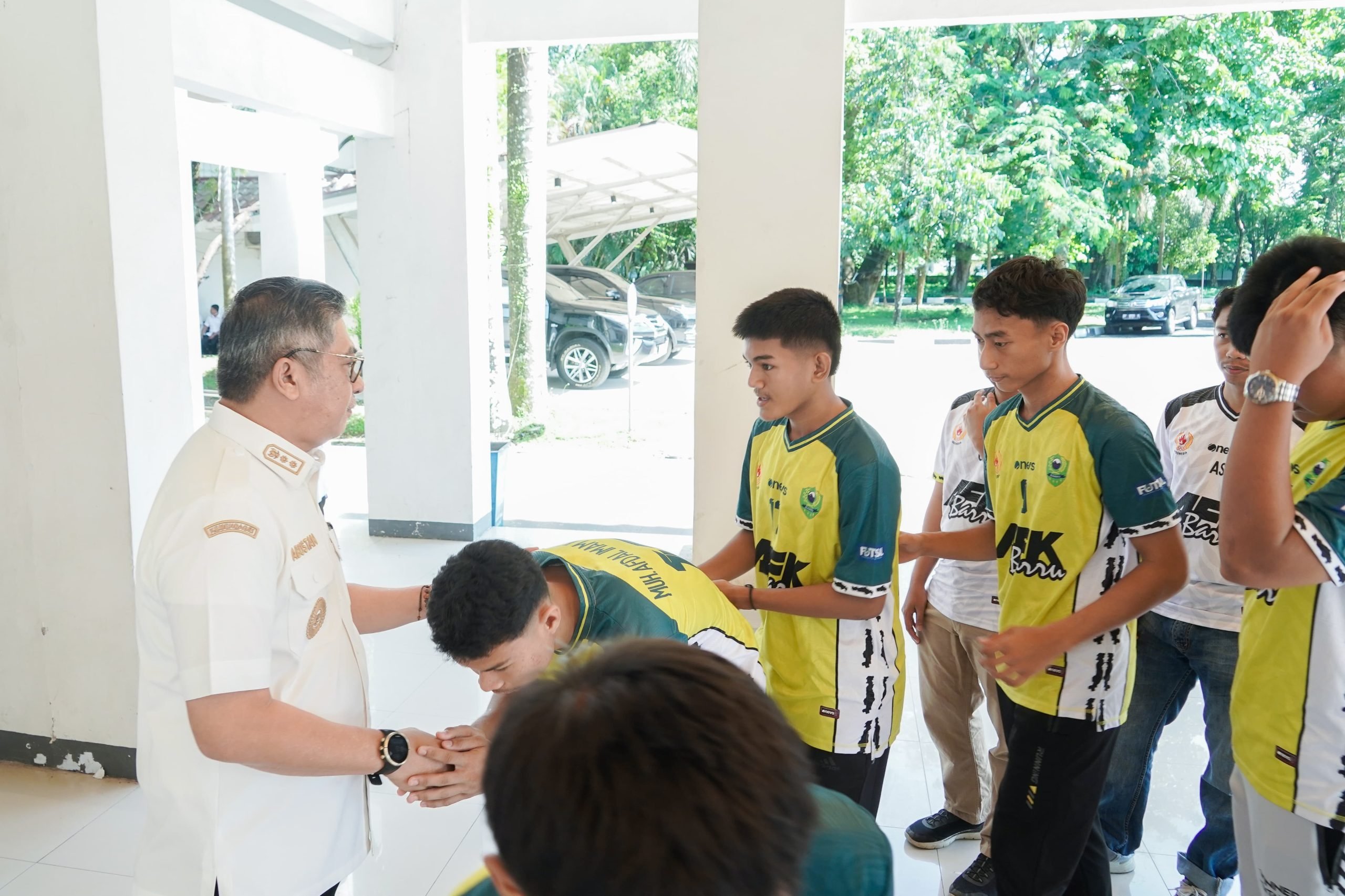 NEWS BARRU– Semangat juang dan kebanggaan tampak menyelimuti halaman Kantor Bupati Barru pada Rabu (15/10/2025) pagi. Di bawah langit cerah, sebanyak 15 pemain dan 8 ofisial tim futsal Kabupaten Barru secara resmi dilepas oleh Wakil Bupati Barru, Dr. Ir. Abustan A. Bintang, M.Si., untuk berlaga di ajang Pra Pekan Olahraga Provinsi (Pra Porprov) yang akan digelar di Kota Makassar.